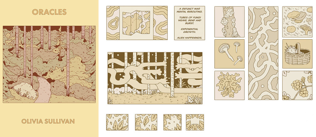 Olivia Sullivan: I started with illustrations I have made in the past that inspired the groundwork for this book, I then made rough thumbnails and developed the work with a lyrical narrative using nature around me and imagining it through a surreal lens.